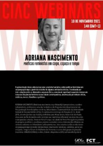 On the 10th of November, at 2pm, CIAC promotes the webinar “Poéticas Feministas em Corpo, Espaço e Tempo” [Feminist Poetics in Body, Space and Time], with Adriana Nascimento, from the Federal University of São João Del-Rei (Brazil). After the great adhesion to the opening lecture with Nigel Power, the CIAC Webinars return for their second edition.