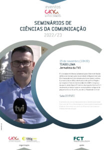 On 15 November 2022, at 10h30, CIAC and the Higher School of Education and Communication (ESEC- UAlg) promote a seminar about Journalism with guest speaker Tiago Lima. The event is organized within the scope of the discipline Communication Ethics and Deontology, as part of the Communication Sciences Degree. The session will be moderated by Prof. Paulo Alves and takes place in ESEC’s room 22.