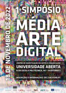 On 18 November 2022, from 9h00 to 16h15, CIAC-UAb (Universidade Aberta – Lisbon) promotes the 1º Simpósio de Média-Arte Digital. The seminar takes place at Universidade Aberta, in Lisbon (R. da Escola Politécnica, 147, Auditório 3).
