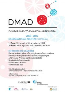The CIAC informs that the first phase (from 29th April to 26th June) to the applications to the seventh edition of the PhD in Media-Digital Art is open. This PhD is offered in association by the Open University and the University of Algarve, under e-learning and presencial regime.