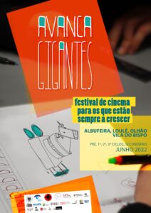 AvancaGIGANTES has the support of the Portuguese and International Federation of Film Societies (FPCC and FICC), the Regional Directorate of Culture of the Algarve (through the Program “JCE – Juventude, Cinema, Escola” and the Program HARPA – História, Artes e Património do Algarve) , of “RBE – Rede de Bibliotecas Escolares” and the Program PEEA – Educação Estética e Artística (PEEA – Artistic and Aesthetic Education). This event in the Algarve is coordinated by Isa Catarina Mateus, with the participation of the teachers responsible in the schools: Manuela Jorge, Isadora Mateus, Anabela Gaspar, and Maria do Carmo Chaves.