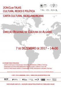 The University of Algarve is promoting a session of the 2CN-CLab Talks cycle “Culture, Networks and Politics: Ibero-American Cultural Charter”, through CIAC – Center for Research in Arts and Communication, developed under the research project Transnational Cultural Cooperation Networks: Portugal European, Lusophone and Ibero-American. This session, which will take place on December 7, at 2:30 p.m., in the Regional Directorate for Culture, will focus on the presentation and discussion of the Ibero-American Cultural Charter and will include interventions by the Regional Director of Culture, Alexandra Gonçalves, from Dália Paulo, from Loulé City Council, João Ventura, from the direction of the Municipal Theater of Portimão, Manuel Gama, from the Center for Communication and Society Studies at the University of Minho and the promoter of the 2CN-CLab project, and Filipa Cerol, CIAC researcher and ESEC teacher.
