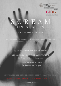 The film cycle Scream on Screen – an Horror Film Fest is organized by students of the Executive Secretariat TEsP, mentored by Professor Márcia André (responsible for the discipline of Organization of events and Protocol). The entrance is free of charge.