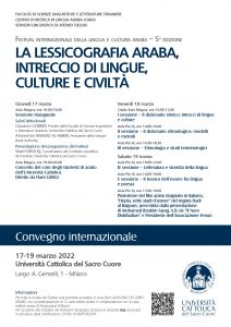 The International Festival of Arabic Language and Culture is promoted by the Faculty of Foreign Language and Literature, the Arabic Language Research Centre and the Linguistic Service of the Università Cattolica del Sacro Cuore (Milan). This edition has brought together academics, linguists, experts in lexicography and etymology, literary critics, historians, translators and poets from fourteen different countries (eight of which are Arabic), to mark the birth of the great dictionary of the Arabic language and to identify lexicography as a space for dialogue between cultures and languages.