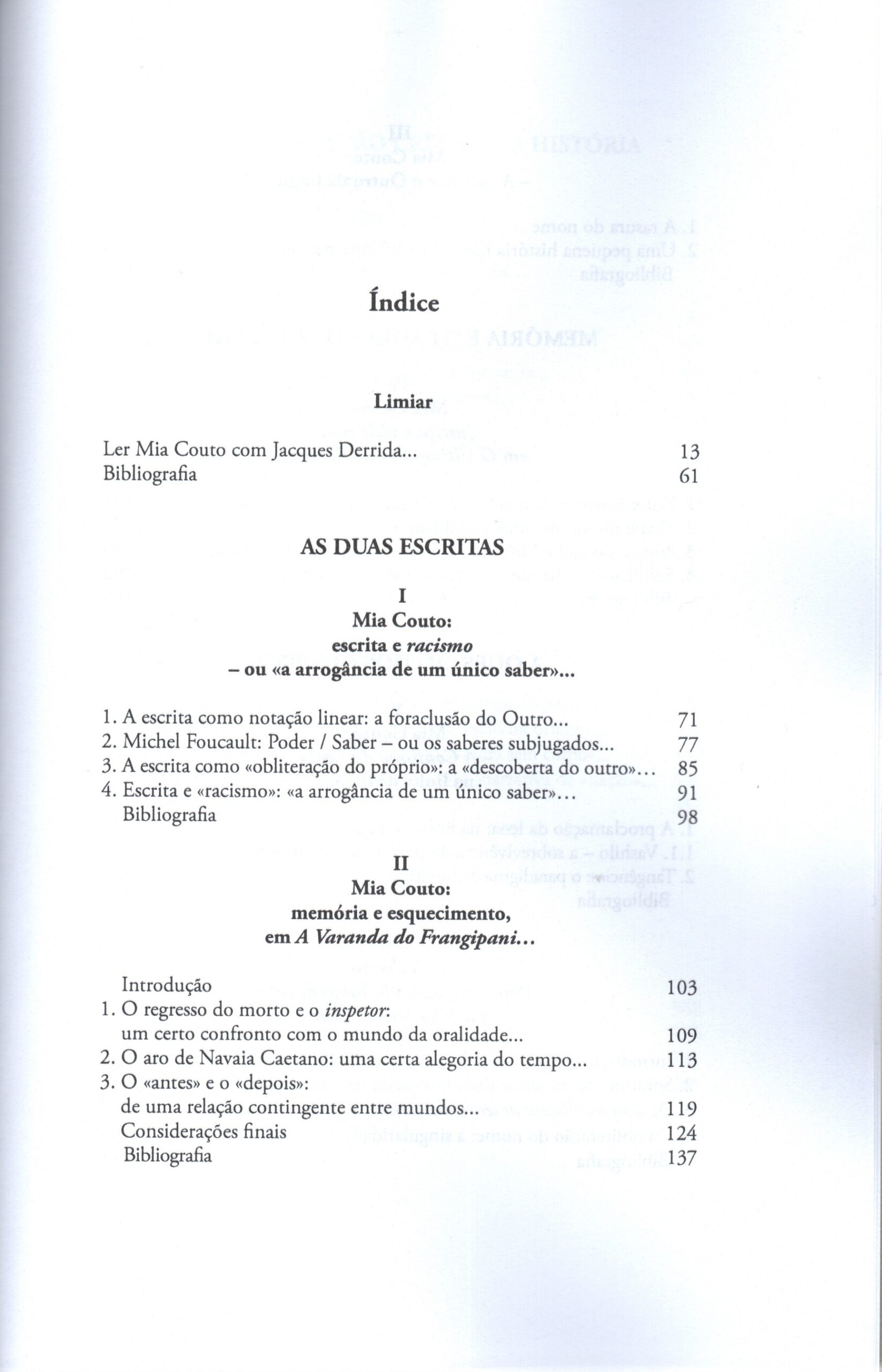 In this book, José Paulo Pereira focuses on the writer Mia Couto: his writing; the concepts of memory and “cultural translation”; the matter of genres; the critical revisiting of history and the historicity of fiction; mourning and melancholy. This work helps us to better situate the writer’s perspective.
