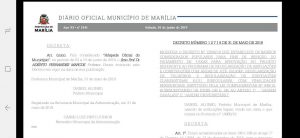 (Municipal Decree of Marília conferring the title Official Guest of the Municipality)