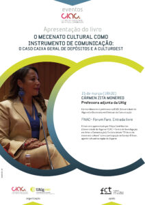 O livro O mecenato Cultural como instrumento de Comunicação: o caso Caixa Geral de Depósitos e a Culturgest, da autoria de Cármen Monereo, professora na ESEC/Universidade do Algarve, colaboradora do CIAC e investigadora integrada do ICNOVA, será apresentado no próximo dia 15 de março de 2023, pelas 18h30, na FNAC do Fórum Algarve, em Faro.