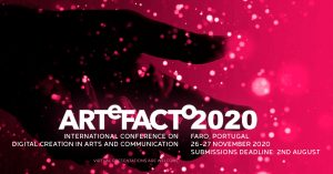 The 2020 edition of ARTeFACTo, Artech International’s 11th organisation of an International Conference, is focused on Digital Creation in Arts and Communication.ARTeFACTo 2020 will be held on the 26th and 27th of November 2020 at the University of Algarve campus of Penha, in Faro, Portugal and will be hosted by CIAC, the Research Centre in Arts and Communication.The goal of the conference is to promote interest in the current digital media culture and its intersection with art, communication and technology as an important research field, while focusing on the study of the digital media artefacts, embracing topics covering their conceptualization, design, creative/art practice/research processes, computational implementation, exhibition and fruition as well their role in today’s information and knowledge society, fostering the establishment of the conceptual foundations of an artefact theory in the digital media world.ARTeFACTo 2020 aims at giving greater visibility to artefact creators and researchers, theorists or practitioners, establishing a common space for the discussion and exchange of new experiences, while fostering better understanding about digital arts and culture across a wide spectrum of cultural, disciplinary, and professional practices. To this end, we cordially invite scholars, teachers, researchers, artists, computer professionals, and others who are working within the broadly defined areas of digital media arts, communication, culture and education, with specific focus on artefacts and artistic installations to join us.