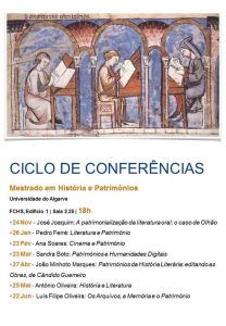 Esta sexta-feira, 23 de março, decorre a quarta Conferência do Ciclo do Mestrado em História e Patrimónios. O tema será “Patrimónios e Humanidades Digitais” e a palestra será proferida por Sandra Boto investigadora do CIAC.