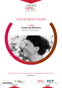 No próximo dia 11 de maio de 2022, pelas 17h00, o CIAC e a Universidade do Algarve promovem uma palestra com a artista multidisciplinar Susana Medeiros. Integrada no Ciclo de Artes Visuais, a sessão decorre no Anfiteatro 0.4 do Campus da Penha e a entrada é livre.