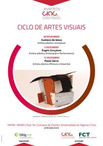 O Ciclo de Artes Visuais iniciado pela sessão de dia 28 de novembro, terá a sua segunda sessão no dia 5 de dezembro com o artista plástico em instalação e performance, Ângelo Gonçalves, sendo finalizado dia 12 de dezembro com Paulo Serra, artista plástico em pintura e desenho.
