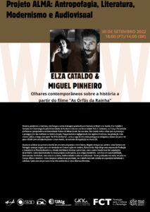 No próximo dia 30 de setembro de 2022, pelas 18h00 (hora de Lisboa), o projeto ALMA – Antropofagia, Literatura, Modernismo e Audiovisual promove a quarta conferência de um ciclo dedicado ao pensamento antropofágico. Sob o título “Olhares contemporâneos sobre a história a partir do filme As Órfãs da Rainha“, a mesa de debate conta com a participação de Elza Cataldo (realizadora, produtora e guionista brasileira) e de Miguel Pinheiro (ator, fotógrafo e realizador português); e com a moderação de Pedro Varoni (UFSCar) e Jorge Carrega (CIAC). Esta sessão decorre em formato online e com transmissão no canal do Youtube do CIAC.