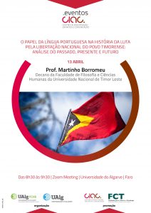 CIAC promove conferência O Papel da Língua Portuguesa na História da Luta pela Libertação Nacional do Povo Timorense: Análise do Passado, Presente e Futuro pelo Prof. Martinho Borromeu, Decano da Faculdade de Filosofia e Ciências Humanas da Universidade Nacional de Timor Leste.