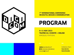 No dia 10 de novembro de 2023, os investigadores Alexandre Martins, Jorge Carrega, Rui d’Orey, Bruno Mendes da Silva e Maria Potes Barbas participam da 7ª edição da Conferência Internacional de Design e Comunicação Digital (DIGICOM). A conferência acontece no Teatro Gil Vicente, em Barcelos, e em formato online.