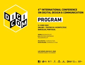 Entre os dias 3 e 5 de novembro de 2022, os investigadores do CIAC Adérito Fernandes-Marcos, Alexandre Martins, Bruno Mendes da Silva e Susana Costa participam na 6ª edição da Conferência Internacional de Design e Comunicação Digital (DIGICOM). A conferência acontece no Teatro Gil Vicente, em Barcelos, e em formato online.
