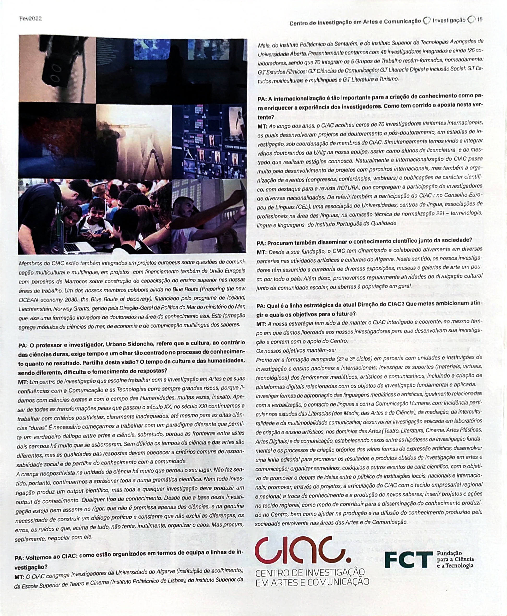 Mirian Tavares e Bruno Mendes da Silva destacam a investigação inovadora levada a cabo pelo CIAC, na área dos estudos artísticos e culturais, da comunicação e dos estudos literários; assinalam o caráter interdisciplinar do trabalho dos seus colaboradores e investigadores; e sublinham a articulação e cooperação entre os pólos do Centro.