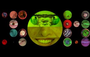 The system evolves in a crescendo, both visual and acoustic, until it reaches its peak: pulsating, vibrating life, surrounded by will (represented by actions, on the left) and body (represented by organs and body parts, on the right), common to most living beings. Life slowly fades into death and is followed by a renewal of the cycle. The computer-based piece will carry on producing cycle after cycle, always with different audio-visual combinations.