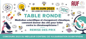 A mesa redonda tem como título “Médiation scientifique et changement climatique, comment donner des clés pour lutter contre le climatosepticisme?”.
