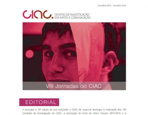 O CIAC informa que já se encontra disponível online a 19ª newsletter. Nesta edição surge em especial destaque a realização das VIII Jornadas de Investigação do CIAC, a promoção do Ciclo de Artes Visuais 2014-2015 e a chamada de trabalhos para o Colóquio Internacional “Cinema do Mundo”.