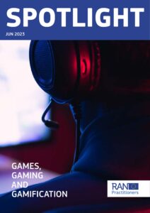 Spotlight é uma publicação trimestral destinada à rede RAN. Cada edição destaca diferentes questões, desde a saúde mental ao extremismo violento. A publicação foi encomendada pela Comissão Europeia e foi preparada pela REOC Communications em nome da RadarEurope. Esta edição analisa o fenómeno de radicalização em jogos e plataformas adjacentes, o uso de técnicas gamificadas, táticas de aliciamento digital e a oportunidade de usar jogos para lidar problemas sociais online. A publicação apresenta uma série de artigos originais e estudos de caso dedicados ao uso de técnicas de jogo para combater a radicalização.