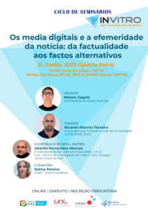 O próximo seminário INVITRO debruça-se sobre a efemeridade da notícia, da factualidade aos factos alternativos e, neste sentido visa contribuir para o debate aportando análises e perspetivas que nos permitam melhor compreender e lidar com as dinâmicas que hoje em dia o espaço mediático permite.