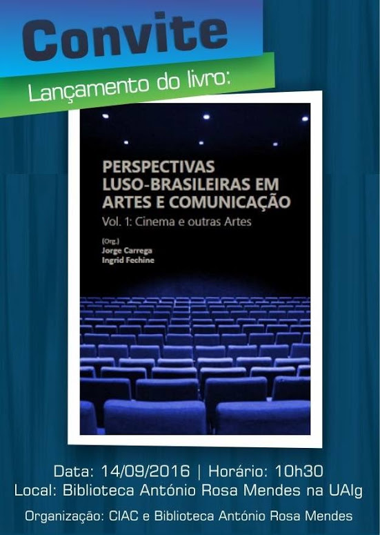 O CIAC e a Biblioteca António Rosa Mendes promovem a apresentação do livro Perspectivas Luso-Brasileiras em Artes e Comunicação vol. 1: Cinema e outras Artes. Esta publicação resulta de uma parceria entre o CIAC, o Grupo de Pesquisa “Comunicação, Memória e Cultura Popular” da UEPB-Universidade Estadual da Paraíba (Brasil) e a colaboração do CIC – Grupo de Pesquisa “Comunicação, Imagem e Contemporaneidade” da UTP- Universidade Tuiuti do Paraná e conta com artigos de vários investigadores do CIAC na área do Cinema, das Artes e da Comunicação.