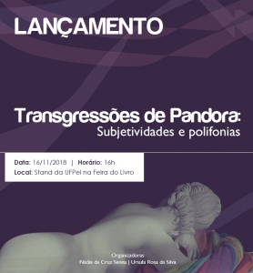 Acaba de ser lançada a publicação internacional Transgressões de Pandora: subjetividades e polifonias, organizada por Nadia Senna, professora associada do Centro de Artes, da Universidade Federal de Pelotas, no seguimento do seu estágio Pós-Doutoral na Universidade do Algarve (2016) sob a orientação da Prof. Mirian Tavares.