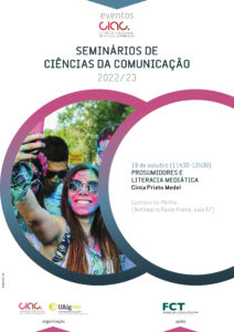 No próximo dia 19 de outubro de 2022, entre as 11h30 e as 12h30, a Escola Superior de Educação e Comunicação (ESEC) da Universidade do Algarve e o CIAC promovem o seminário Prosumidores e Literacia Mediática, com Cinta Prieto-Medel. Organizada no âmbito da unidade curricular de Literacia dos Media, da licenciatura em Ciências da Comunicação, a sessão será moderada pela Prof. Ana Filipa Martins e decorrerá no Anfiteatro Paulo Freire (Sala 67), no Campus da Penha.