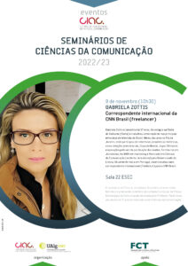 Ao longo de todo o ano letivo de 2022-23, serão abordados temas relacionados com os domínios do referido grupo de trabalho, do jornalismo à comunicação estratégica, da análise e produção dos media à literacia mediática. Em novembro, ainda estão previstos os seminários com Ricardo Brito Reis (11 de novembro), Rui Gustavo (15 de novembro), Blessing Lumueno (18 de novembro) e Nelson Floro (25 de novembro).
