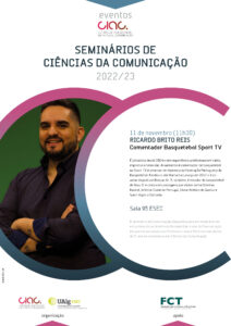 No próximo dia 11 de novembro de 2022, pelas 11h30, a Escola Superior de Educação e Comunicação (ESEC) da Universidade do Algarve e o CIAC promovem um seminário com Ricardo Brito Reis, comentador da Sport TV. Organizada no âmbito da unidade curricular de Comunicação Desportiva, da licenciatura em Ciências da Comunicação, a sessão será moderada pela Prof. Joana Palminha e decorrerá na Sala 95, da ESEC.